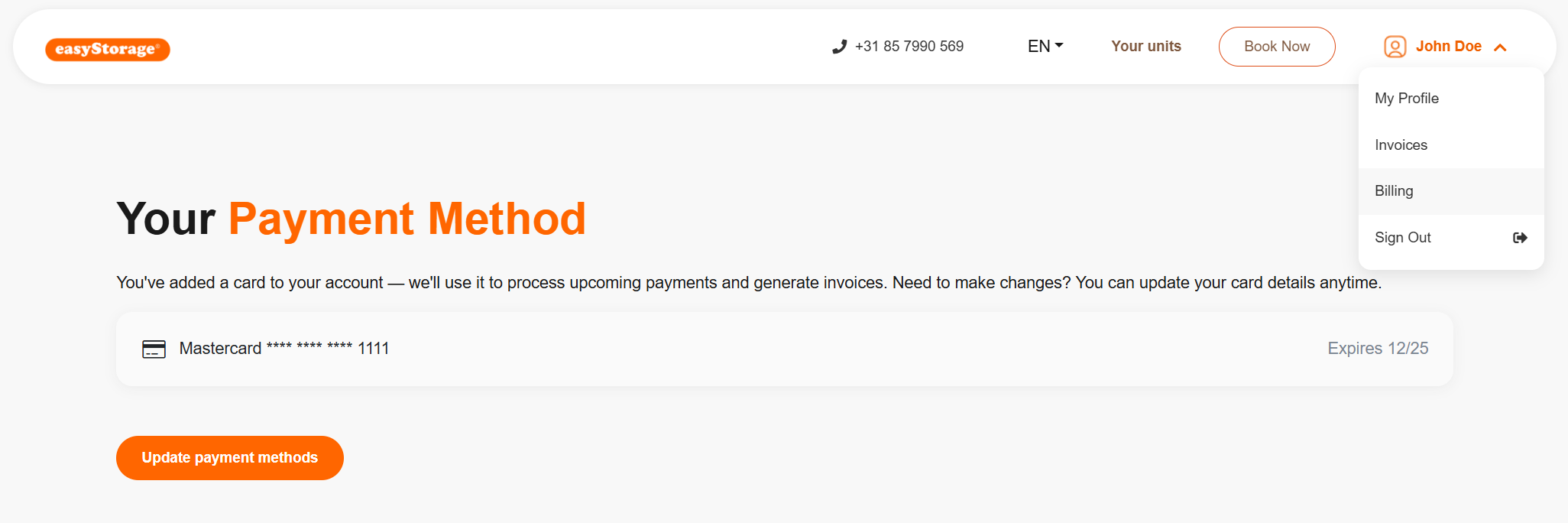 Cards expire, banks issue new ones, or you might just want to switch to a different card. Whatever the reason, updating your payment details in your easyStorage account is quick and easy.